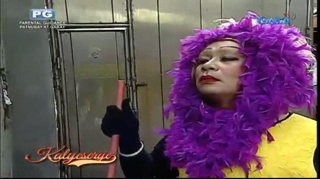 The car horn honking signaled Lola Nidora’s arrival at the ALDUB 17th Weeksary. And she looked like the high priest from the Disney animated film “The Lion King”. She has purple feathers and a staff. Her Rogelio Rogelio Rogelio were dragging her suitcases. Later she’s uttering Russian gibberish. Donya Tidora found it odd for her to dress ridiculously. “Ate, bakit ganyan ang hitsura mo?” (Elder sister, why do you look like that?) Lola Nidora admitted her reason easily. “Baka kasi dumating ang Donya Babah, ang lola ni Alden. Papasikatan ko lang. Baka ismulin tayo.” (Alden’s granny Donya Babah might arrive. I’d show her. She might belittle us.)