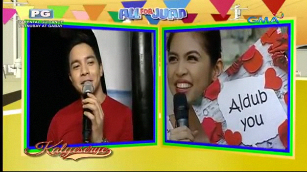 After the Sugod Bahay errand. Alden serenaded YayaDUB to celebrate the ALDUB 17th Weeksary. He then admitted something to YayaDUB. “Alam mo di naman natin kelangang mag-celebrate linggo-linggo. Basta everyday. ALDUB you. Ginawa ko ito for you.” (You know we don’t have to celebrate every week. ALDUB you everyday. I did this for you.) He then showed the plywood that he decorated for YayaDUB.