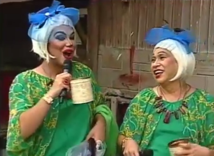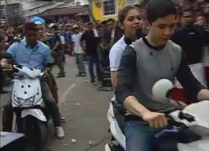 Lola Nidora and YayaDUB arrived at the ALDUB 22nd Weeksary episode. But in separate mopeds. Lola Nidora was at the backseat of a Rogelio’s moped. And YayaDUB was at the backseat of Alden’s moped. It looked like a pair of riding tandems. YayaDUB was half-excited and half-nervous in the ride. “Grabe! Wag naman masyadong mabilis, Alden. Nakakatakot.” (Damn! Not too fast, Alden. It’s scary.) Lola Nidora almost fell off the moped. So scared, she smacked the Rogelio with her folding fan. Donya Tinidora saw which Rogelio drove the moped for Lola Nidora and smacked him on the head.
