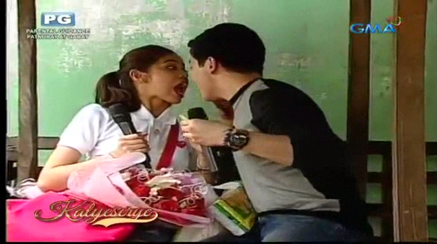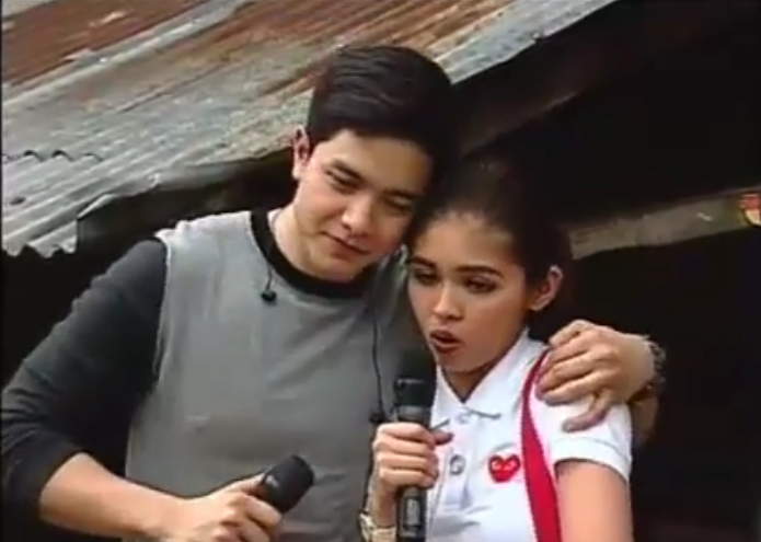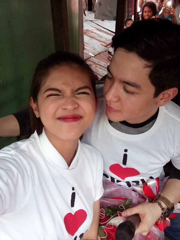 Both Alden and Divina then wore the t-shirts. It fitted perfectly. Divina then took a selfie of them wearing the shirts. She had it uploaded on her account [@mainedcm] in minutes. It’s the kind of behavior that made one of the KalyeSerye commentators at the ALDUB 22nd Weeksary episode, Ryan Agoncillo, ask Allan K. Allan K then relayed the question. “Nagtanong si Ryan. Itong pinapanood natin, aktingan pa ba ito?” (Ryan asked. This thing we’re witnessing, is this still acting?)