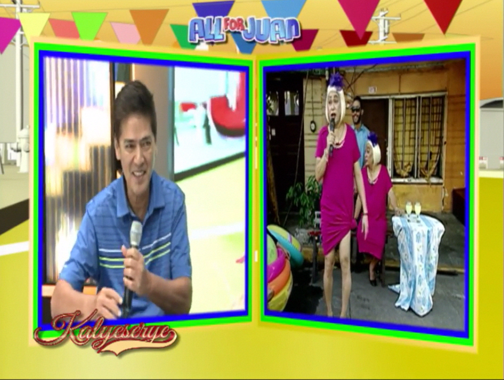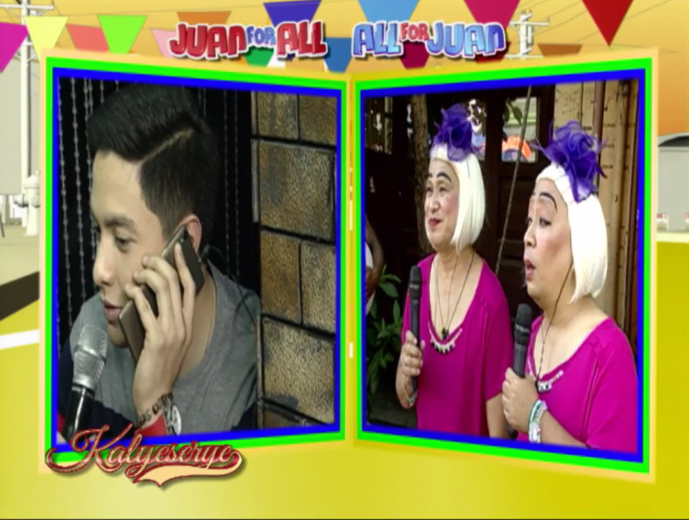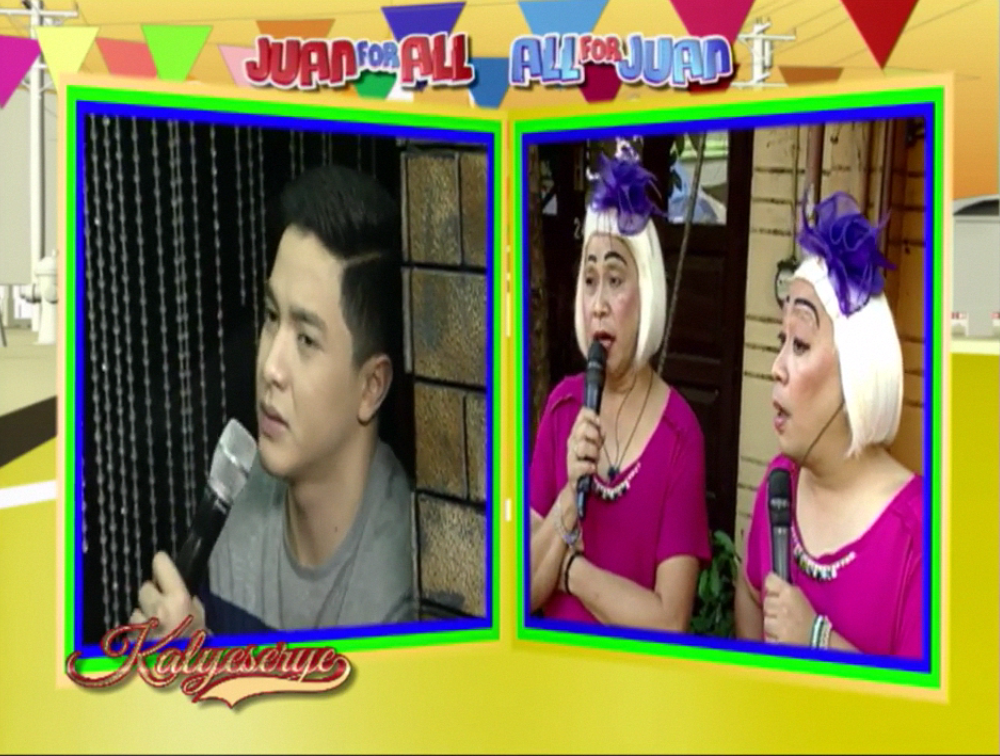 Alden then appeared on the other monitor. After DUBmashing at the ALDUB 40th Weeksary episode. Alden greeted the grannies. After a short talk, he asked. “Nandiyan po ba si ano?” (Is she there?) Donya Tinidora asked back. “Sino?” (Who?) Bossing Vic butt in. “Si Rogelia … Ay! Di ko agad nakita. Andun.” (Rogelia … Oh! I didn’t see him immediately. He’s there.) Rogelia arrived at the ALDUB 40th Weeksary episode just behind Lola Nidora.
