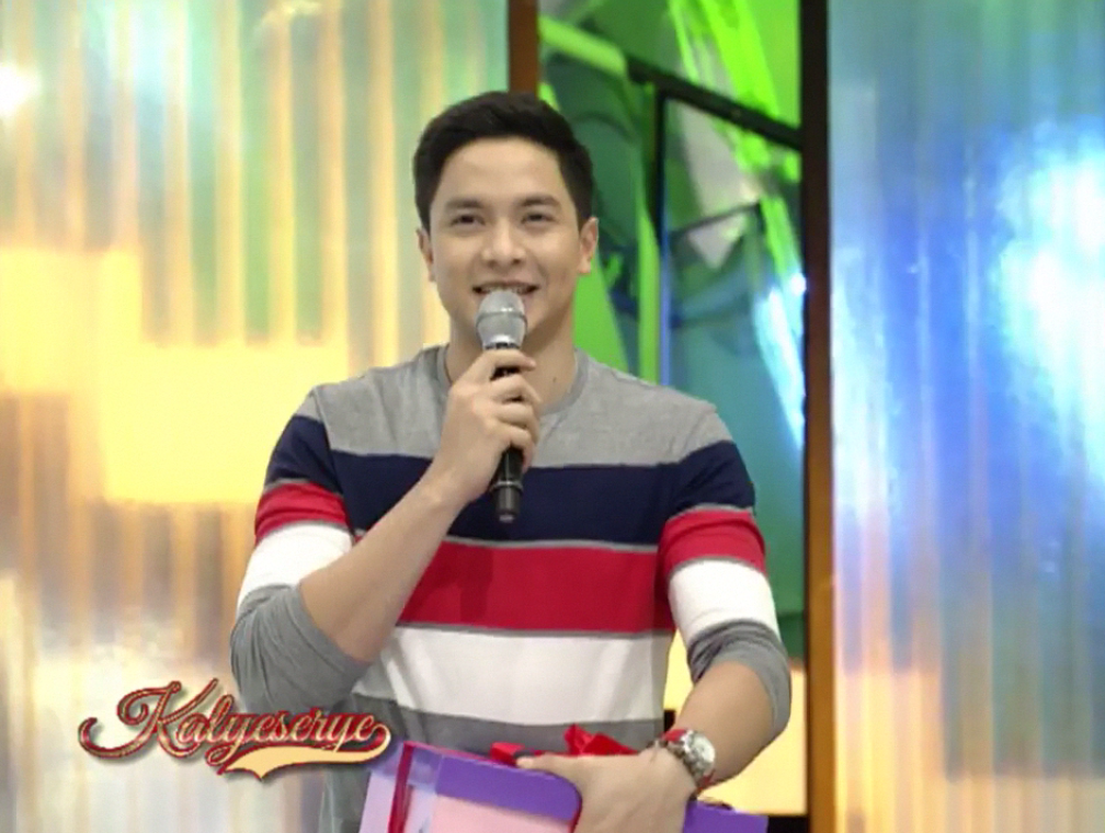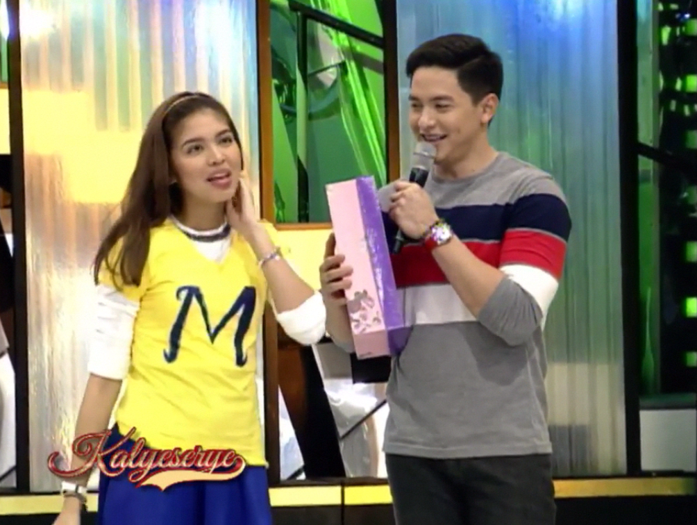 Alden laughed it off. He denied that it’s a cake too. “Hindi naman, bossing.” Alden let Divina untie the ribbon. Donya Tinidora had a different speculation. More sarcastic. “Ahas yan.” (It’s a snake.) Alden just gave a little clue to ward off speculations at the ALDUB 40th Weeksary episode. “Simple lang ito. Pero maraming kahulugan.” (It’s just a simple gift. But it has a lot of meaning.)