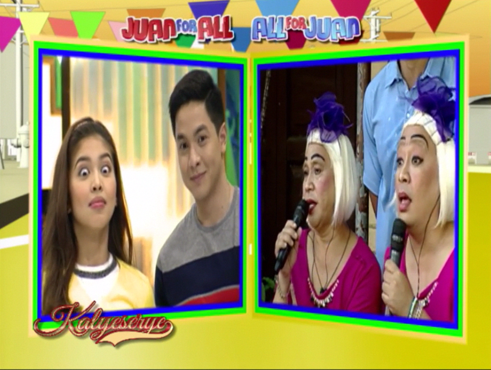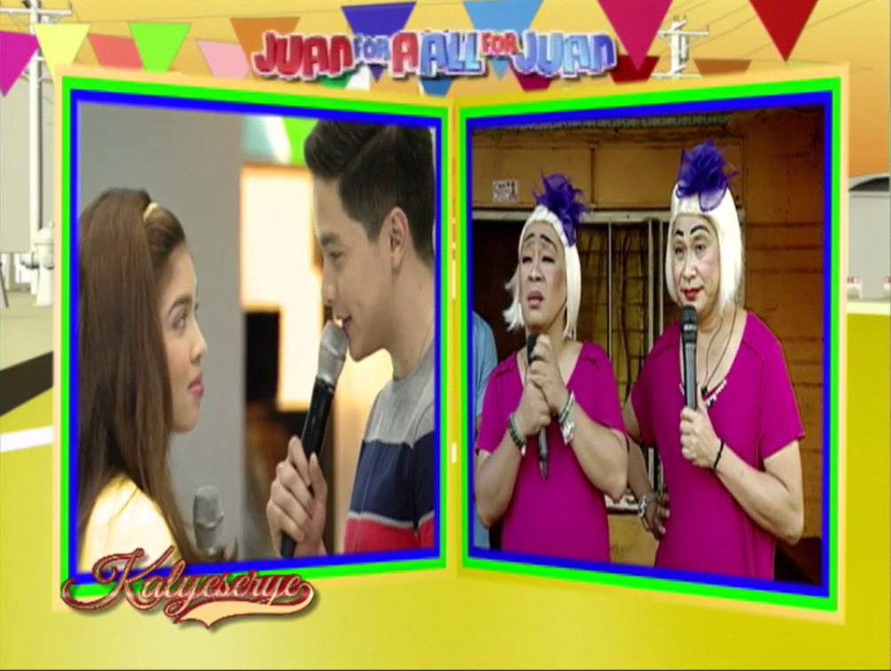 Donya Tinidora relented. “Sige na. Mag-actingan na nga tayo ngayon. Yung kayong dalawa.” (Okay. Let’s start with the acting session. The one with the two of you.) Allan K was excited. At the ALDUB 40th Weeksary episode. Lola Nidora voiced out her concern. “Sandali. Yung kahapon, split screen. Ngayon magkadikit na. Yun ba yung kiss?” (Just a moment. Yesterday, it’s split screen. Now they’re together. Is that the kiss?)