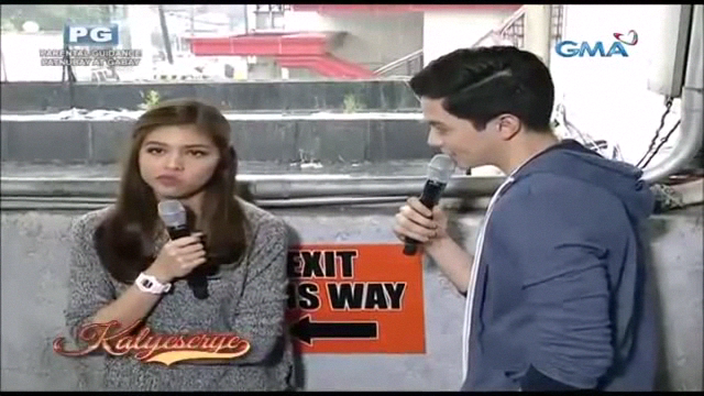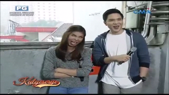 Alden then flexed his muscles. Divina reacted a little sarcastically. “Tatay ba kita?” (Are you my father?) Divina then continued. “Malaki daw ang katawan. Tapos guapo. ‘Tay?” (He was said to have a big body. Then handsome … Father?) Alden tried to ride on the joke. “Ako? Ako pala yun? Hindi. Hindi puede. Ano to?” (Me? Could it be me? No! No way! What the heck?)