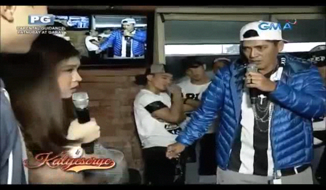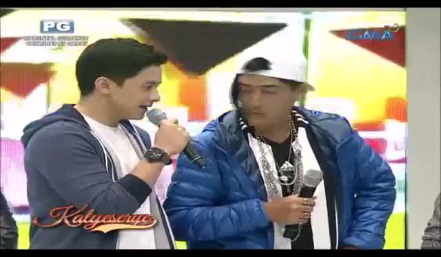 The track then was changed to Drake’s “Hotline Bling (You Used To Call Me On My Cellphone)”. The man from the sports car hopped off with the camera at the ALDUB Ang Pagtatagpo episode not showing the man’s face. He wore a pair of yellow Nike shoes and denim jeans torn at the knees. He wore what looked like a football jersey for a top with several chain necklaces and a blue jacket. He looked like some character that walked out of a hiphop music video. [Halfway through the entrance, Jose Manalo and Wally Bayola were already suppressing their laughter in the ALDUB Ang Pagtatagpo episode upon learning who arrived.]