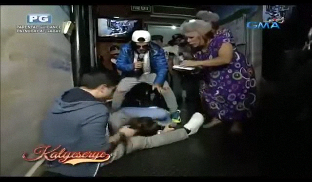 Even Alden had trouble waking up Divina. Everyone had to wait for the commercial break and the Sugod-Broadway to end before going back to the ALDUB Ang Pagtatagpo episode. The storm raged outside the Broadway Centrum hence no Sugod Bahay errand for the meantime. Once Divina has regained consciousness. Lola Nidora talked to her. “Bakit ka ba nangingisay-ngisay? Meron ka bang ibang nararamdaman? Wala ka namang sakit na ganyan eh.” (Why did you have a seizure? Are you feeling something else?) Divina didn’t say much. “Lola, nagulat lang po talaga ako kanina.” (Granny, I really was just shocked awhile ago.)