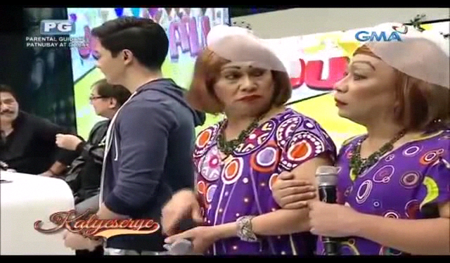Later in the ALDUB Ang Pagtatagpo episode. Lola Nidora and Donya Tinidora arrived. They wore dusters this time instead of the almost corporate-looking Sunday dresses. But the hair ornaments are still there. They were accompanied by the Rogelios who no longer wore the blue barongs. Donya Tinidora had to ask Lola Nidora what are they doing at the Broadway Centrum again. Lola Nidora explained. “Ang sabi sa kin ni Divina eh dito daw sila magtatagpo.” (Divina told me that they of her father will meet here.)