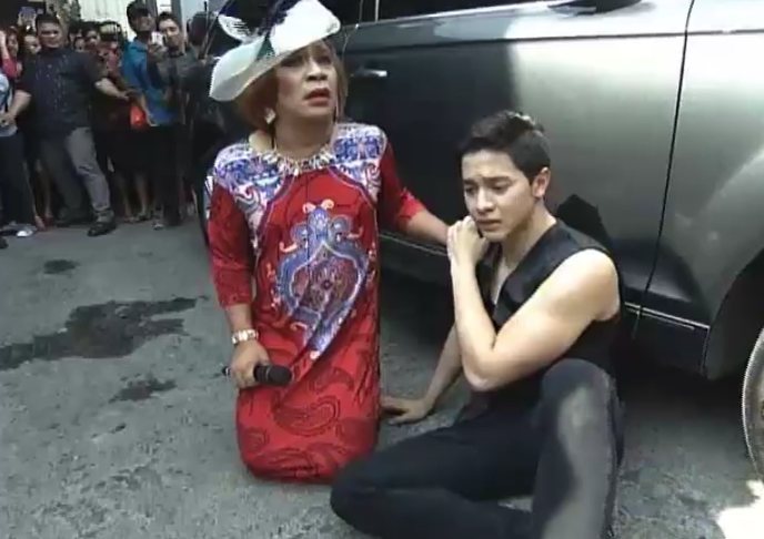Lo and behold! She is now lecturing Alden and YayaDUB about ruined trust. About how she is just testing Alden and YayaDUB if they can keep their promise to her. For her a promise is sacred. (Um, yeah. Just like the promise she forced YayaDUB into making in an effort to marry Frankie Arenolli way back in the ALDUB Against All Odds episode) She went on to say how disappointed she is of Alden and YayaDUB. Alden tried to go back to the stage in an effort to get to YayaDUB on the other side. But Lola Nidora managed to get the floor plan herself to lock Alden up away from YayaDUB. Alden and YayaDUB could only cry behind the wall that kept them apart.
