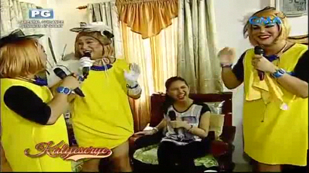 Donya Tidora got worried of her sister. “Kakabagin ka na naman, ate.” (You’d get another flatulence, elder sister.) She always sat close to Lola Nidora. So she wanted to avoid another farting incident like in the ALDUB Kilig Continues episode. Boss Joey had an interesting suggestion. “Bigyan mo kaya ng kamote.” (Give her some cassava.) Lola Nidora didn’t mind at the ALDUB Deja Vu Love episode.