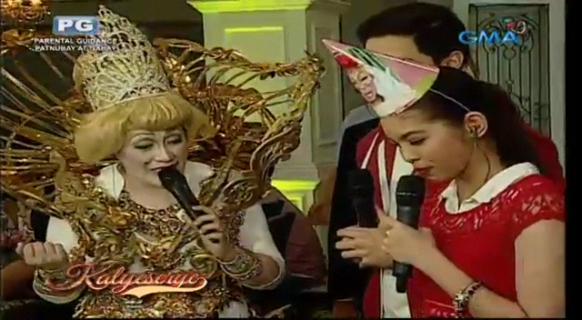 Donya Babah addressed YayaDUB as “Ursula”. She also noticed that she wore a dress with the same color as that of Alden’s jacket. The KalyeSerye commentators asked if Donya Babah’s dress is for some parade. Donya Babah didn’t feel over-dressed for the occasion. “This is my normal outfit.” She then thanked for the set of cupcakes that YayaDUB assembled for her birthday.