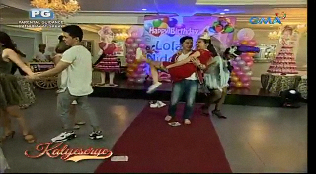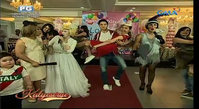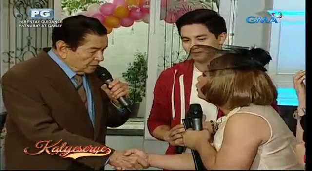 The camera showed the unexpected guest. Alden greeted him. “Lolo Ed!” (Granny Ed!) He didn’t have bodyguards. So the Rogelio Rogelio Rogelio escorted him in the party at the ALDUB Happy BDay Lola episode. Donya Babah and Alden went to the entrance to personally welcome him. “Hello, my brother! How are you today?” He replied. “Fine. Thank you. Alam mo, kanina pa kita tinatawagan sa cellphone. Hindi ka sumasagot. Hindi ka ba nagbayad?” (I’ve been calling you on the mobile phone. You’re not taking my calls. Haven’t you paid your bills?) Donya Babah didn’t answer the question directly. “Bakit hindi mo na lang ako hinintay?” (Why didn’t you wait for me instead?)
