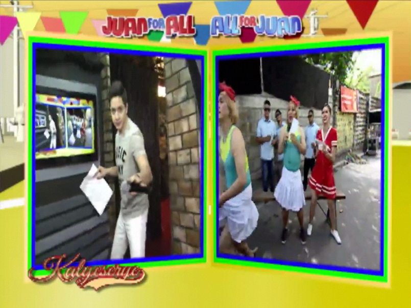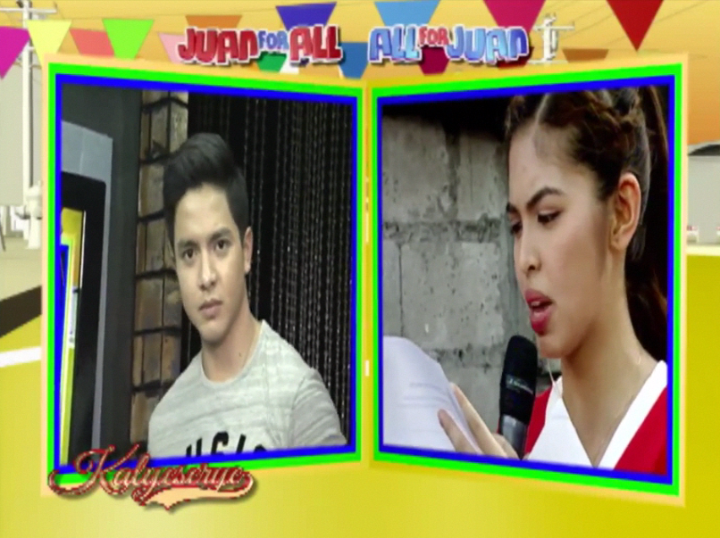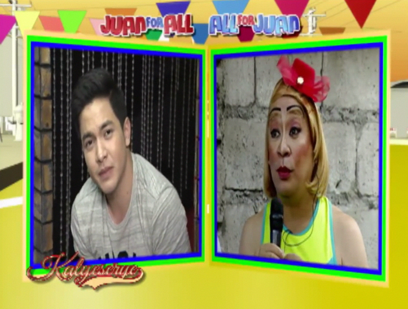 Donya Tinidora mocked her pronunciation again. “Hay naku. Si X-Men. Walang Xcort. Lahat na yan.” (Some X-Men. There would be no “xcort”. [Anyone from the team will do.]) Alden then turned to Divina. He reminded her of a question that Boss Joey and Bossing Vic gave them at the Sugod Bahay segment. [Long before the ALDUB HBD Bossing episode. The Sugod Bahay segment has been a segment separate from the KalyeSerye segment.]
