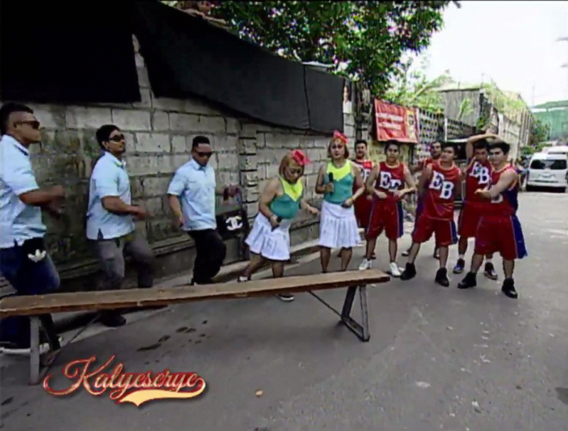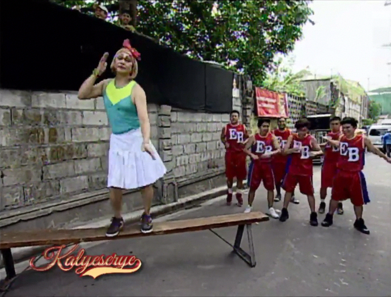 For the ALDUB HBD Bossing episode. Bossing Vic, the birthday celebrant himself, is joined at the KalyeSerye commentary panel by Boss Joey and Ruby. He first saw Donya Tinidora’s replacement players warming up. “Ngayon na ba yung sportsfest?” (Is the sportsfest today?) Boss Joey slightly confirmed it. He’s more concerned about Donya Tinidora upon seeing her arrive. “Nag-tape na kaya ito? May nipple tape ka na?” (Has she used tape? You got nipple tape now?)