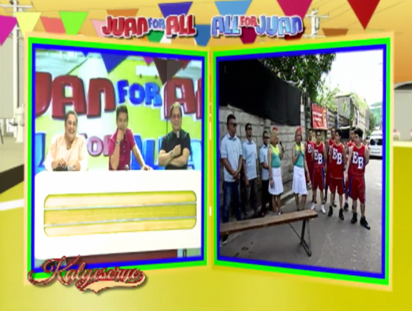 Donya Tinidora’s answer was not heard that clearly. The audio was somewhat choppy at first at the remote location at the ALDUB HBD Bossing episode. It was already audible once she started talking to the replacement team. “Stretching, boys. Ayan, ready’ng ready na yung team ko. Mayamaya susunduin na tayo. Para sa sportfest.” (We are so ready of my team. Later, they will pick us up. For the “sportfest”.)