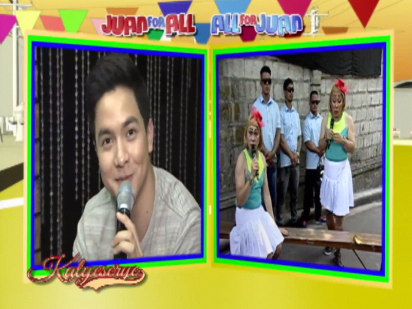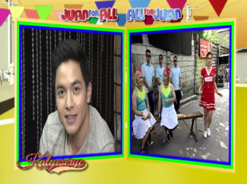 Lola Nidora chose to think lightly of it though. “Sabi nagbibihis lang daw yun. Kasi pinapaayusan ko yung apo natin. Siempre. First time na magmu-muse sa sportsfest yun.” (I was told she’s just getting dressed. I had our grand-niece made up. Of course. It’s her first time to be muse at the sportsfest.) Alden appeared on the other monitor shortly while DUBsmashing to VST & Company’s “Awitin Mo at Isasayaw Ko”. Half-DUBsmash and half-singing in an effort to learn the lyrics. He then greeted the grannies present at the ALDUB HBD Bossing episode. “Hello, lolas.”