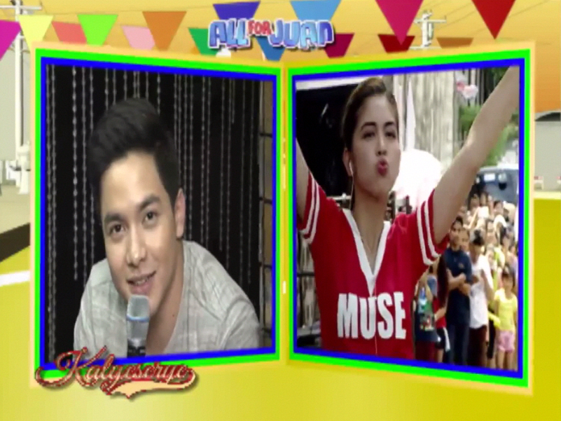 Alden then tried swinging the topic back to the sportsfest. “For sure, kung sinong makakalaban mo sa sportsfest na yan, olats na yan.” (Whoever you’re gonna face on the sportsfest would lose to you.) At the ALDUB HBD Bossing episode. Divina somewhat agreed. “Oo nga eh. Pero mas okay sana kung nandito ka ano? Para ikaw yung escort.” (Yes indeed. But it would be better if you’re here, isn’t it? So that you’d be escorting me.)