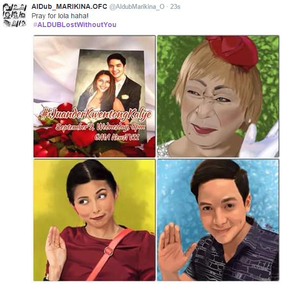 #ALDUBLostWithoutYou YayaDUB’s attempt at escape is hanging in the balance. Lola Nidora enters the scene assisted by the remaining Rogelios. She mentioned at the ALDUB Kapit Lang episode how she has neglected herself ever since losing YayaDUB. Her only consolation is Donya Tinidora with her flawless legs comforting her with a little bit of Monica.
