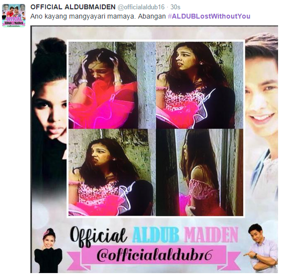 First, YayaDUB. Then, Alden. It’s already Thursday. Just a day short of the weekend. With YayaDUB out of the kidnapper’s lair, how can she get in touch with Alden? What lies ahead now that it’s almost a week with very little interaction between ALDUB? Tune in to Eat Bulaga. Monday to Saturday at noontime. Like Eat Bulaga’s official Facebook page to catch the ALDUB Lost Without You replay.