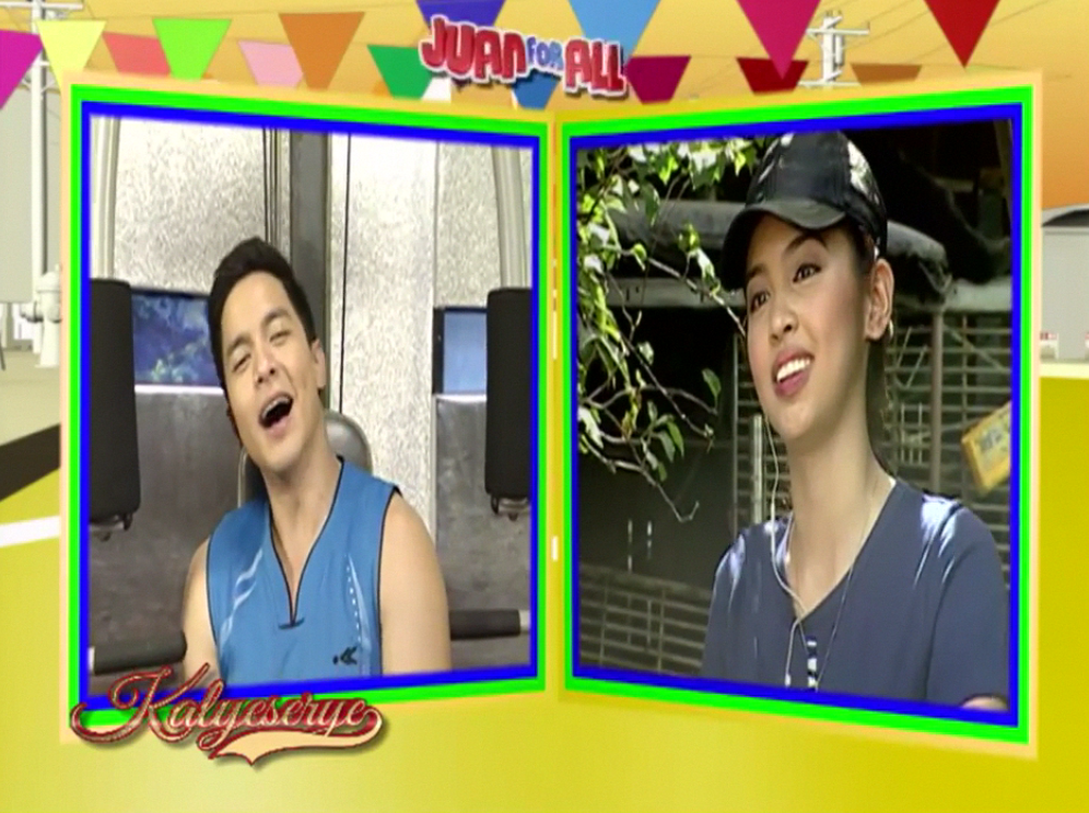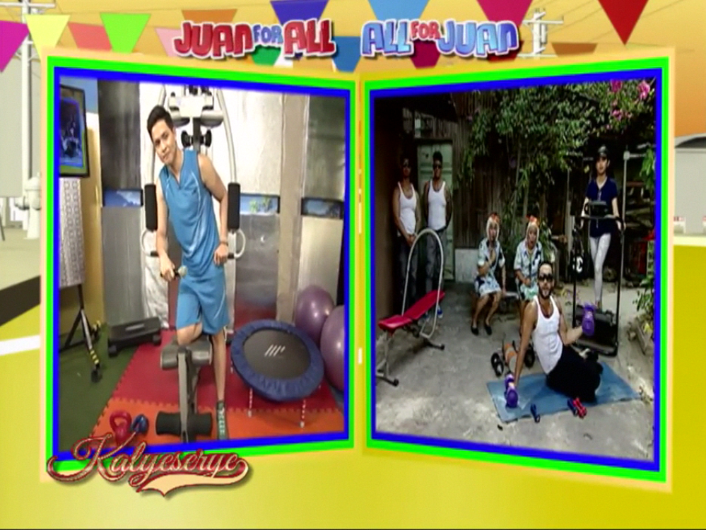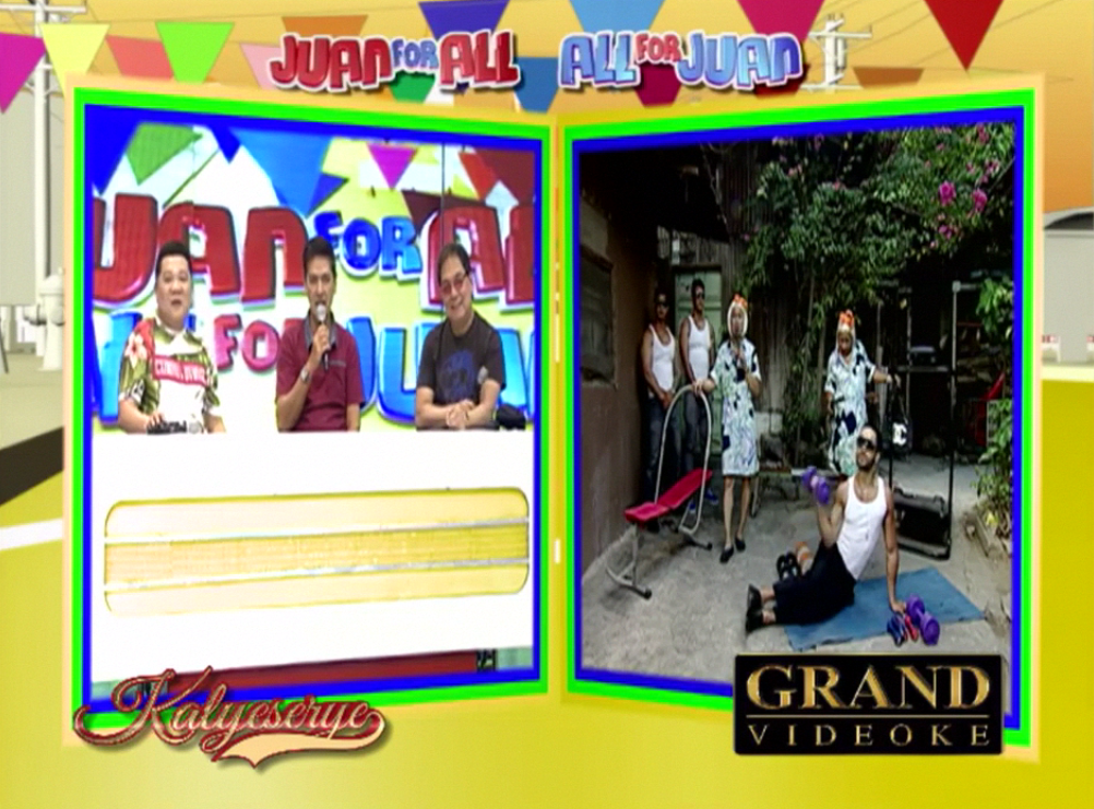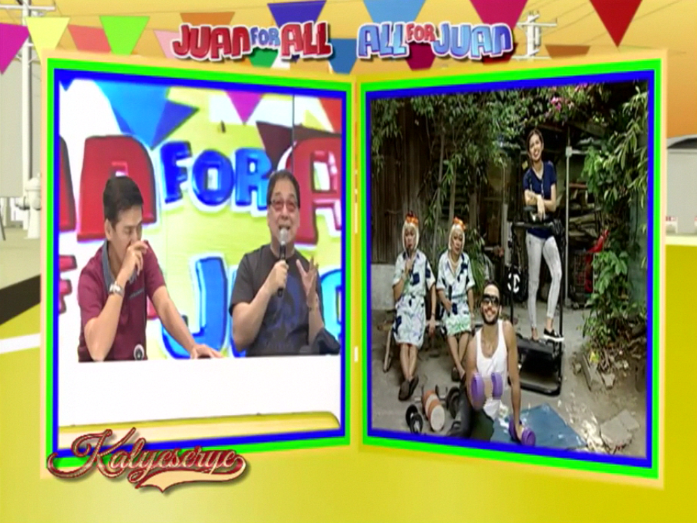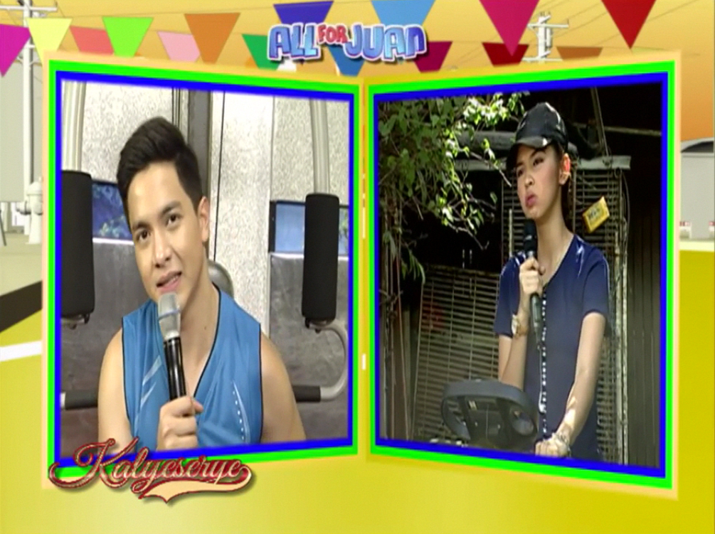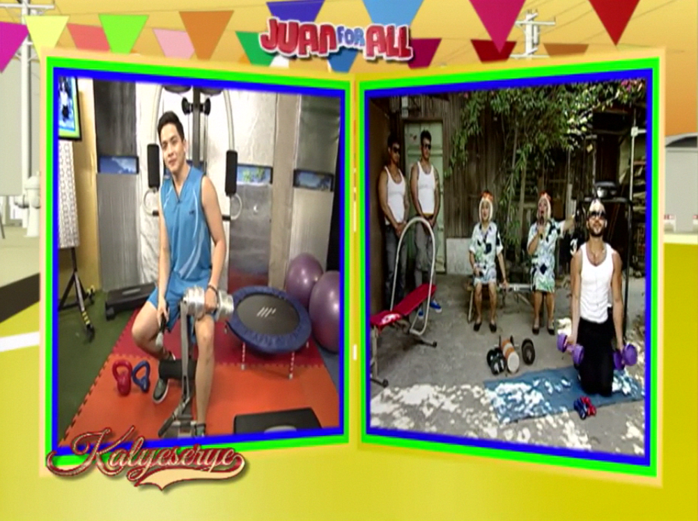 Allan K supplanted Donya Tinidora’s sarcasm at the ALDUB Love on Cue episode. “Wag kalimutan ang extra rice.” (Don’t forget the extra rice.) Lola Nidora finished her test exercise and talked to the Rogelios. “Kaya pala ang aga aga nyong nawala sa mansion. Nandito kayo sa gym. Sumabay tayo dito.” (No wonder you were gone earlier from the mansion. You’re here at the gym. Let’s join them.)