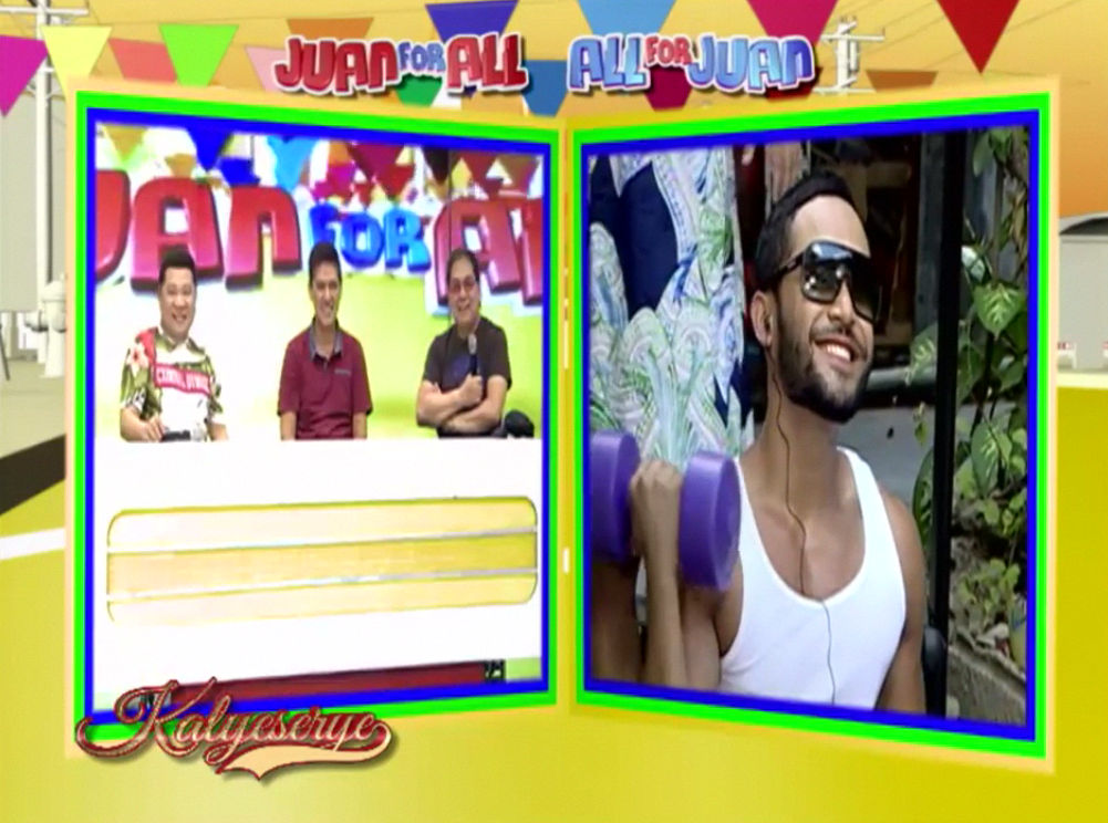 Shortly, LMFAO’s track started playing at the ALDUB Love on Cue episode. Alden was then shown working out at the gym. Donya Tinidora saw him. “Nagwo-workout din si Alden dito. Malakas ‘to ha?” (Alden is working out too. He’s pretty strong.) Alden held the barbel on one hand and the mic on the other. Bossing Vic had to comment. “Parang mas mabigat ang mic ah.” (The mic seemed heavier.)