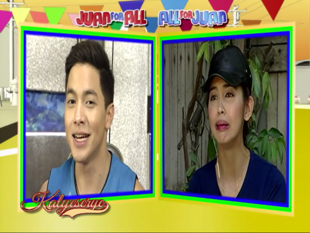 Divina has a joke too. “Alden, anong pagkain ang pabiro?” (What food is a joke?) Alden asked what it is. Divina replied. “E di chicharot.” Soon Alden had to change the topic. “Kumusta na yung pakiramdam mo?” (How are you feeling?) Divina mentioned how she felt. “Okay na. Maginhawa na.” (I feel better now.) Alden repeated what he said earlier at the ALDUB Love on Cue episode. “Na-miss you eh.” (I miss you.)