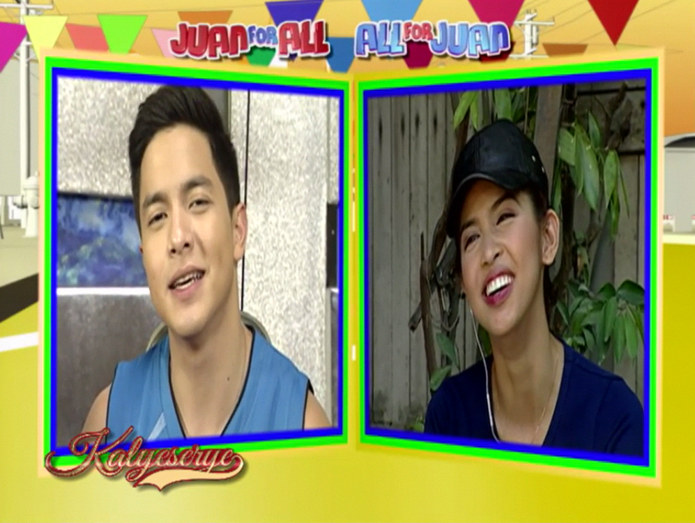 Lola Nidora asked Alden. “Bakit ka naman sumasabay sa pag-exercise nitong mga Rogelio?” (Why are you exercising too like the Rogelios?) At the ALDUB Love on Cue. Alden replied. “Di ba? Kelangan lagi tayong healthy. Lalo ngayong summer. Galaw-galaw tayo. Mahirap nang ma-heat stroke, lola.) (Isn’t it? We need to be always healthy. Especially this summer. We should be on the move. It’s hard to get some heat stroke.)