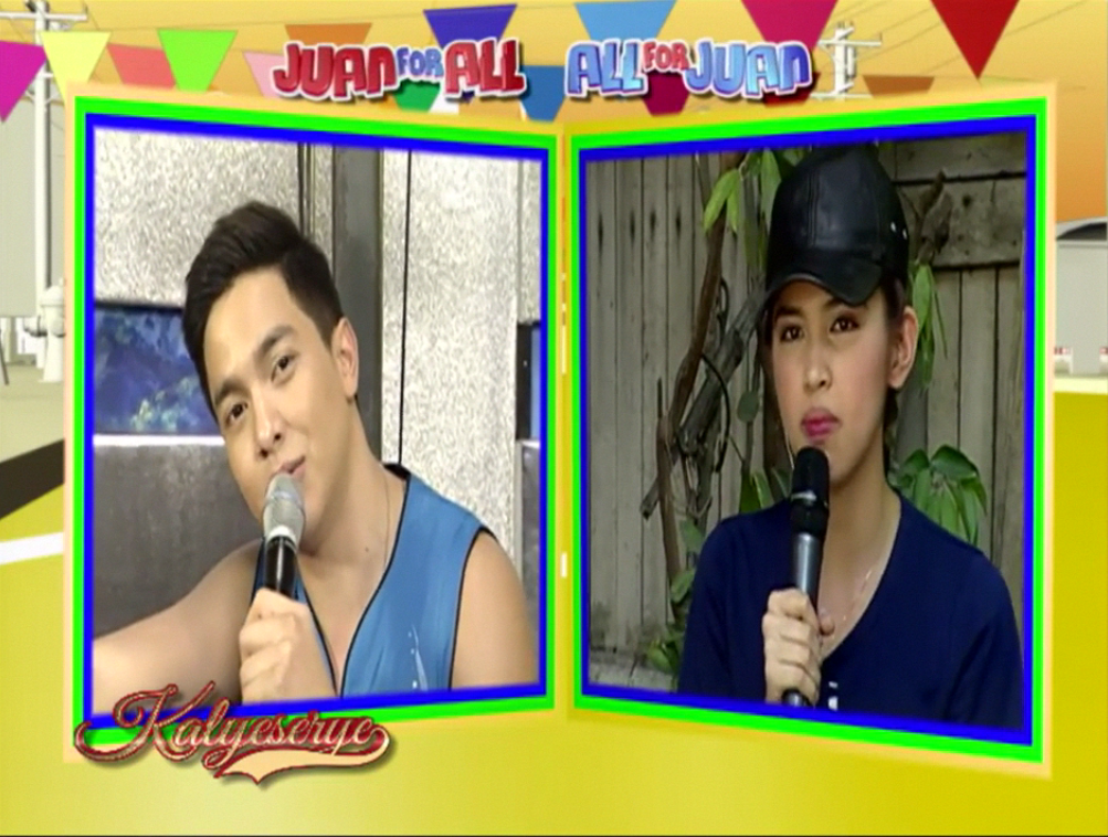 Lola Nidora shared a tip. “Gayahin mo kami. ‘Lola, gusto mo bang kiligin? Kumain ka ng kamias.’ Ganun.” (Try imitating this. “Granny, do you want to feel giddy? Eat kamias fruit.” That’s how.) At the ALDUB Love on Cue episode. Boss Joey found Lola Nidora’s “kilig” joke funnier. “Buti pa yung lola, meron eh.” (At least the granny has a joke to crack.)