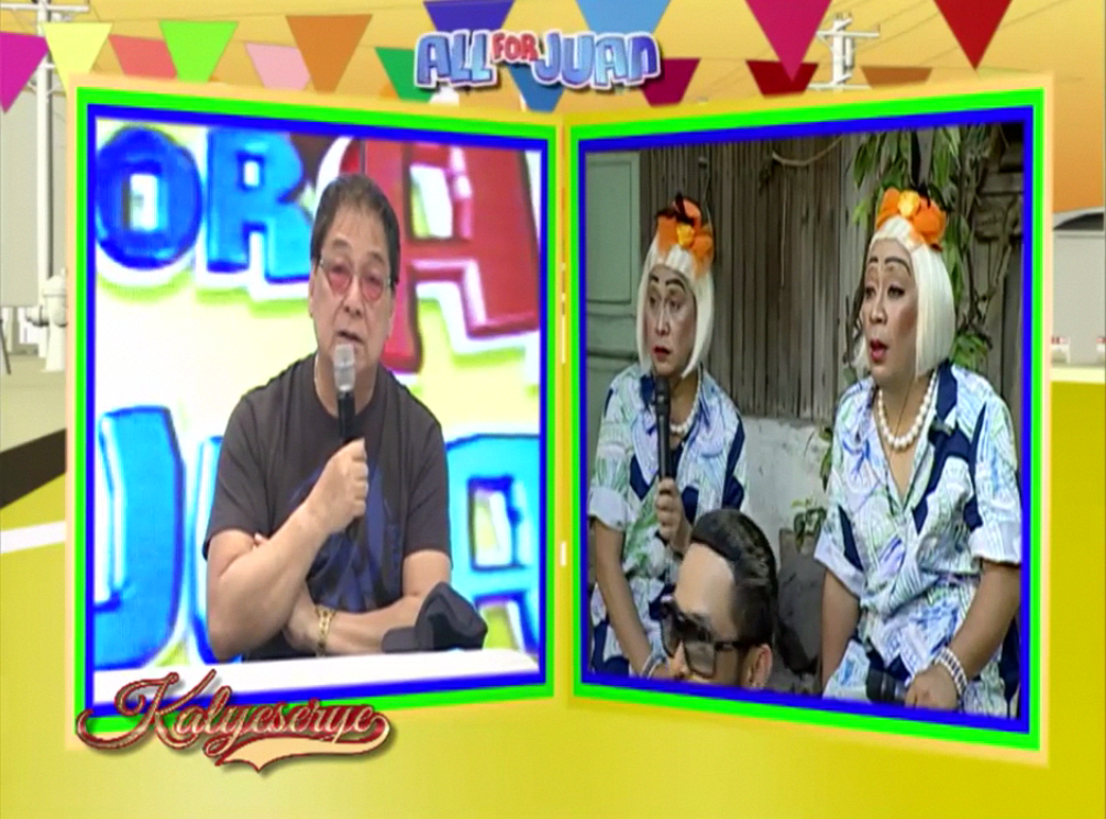 Boss Joey realized that the Rogelio Rogelio Rogelio were complete. “Yung 2, excon. Yung isa, CONFEERMED.” (2 of them are ex-con. The other one is openly gay.) Donya Tinidora liked what she saw at the ALDUB Love on Cue episode. “Kaya bilib na bilib ako sa mga Rogelios natin, ate.” (This is why I admire our Rogelios, elder sister.) Bossing Vic commented. “Eh si Rogelia?” (How about Rogelia?)