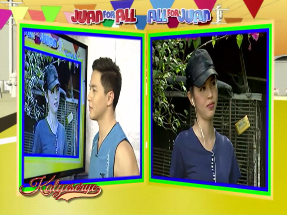 Donya Tinidora mentioned the obvious. “Split-screen.” Alden is ready for it. Allan K agreed to it. Lola Nidora told Divina. “Alisin mo yung sumbrero mo. Baka tumama kay Alden.” (Remove your cap. It might hit Alden.) Alden moved to a bigger monitor. “Kelangan ba ng mga linya-linya?” (Do we need lines?) Divina is ready at the ALDUB Love On Cue episode. “Derecho na ‘to eh.” (This will be straight to the point.)