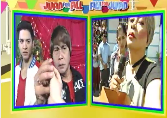 YayaDUB was very happy. Frankie, in the bosom of 2 alluring assistants, watched in disappointment as Lola Nidora wrote on the scoreboard. The scoreboard is more like a coffee table book. Lola Nidora wrote the task and the score under the accomplished task. 1 point. YayaDUB then wrote on her paper “Naka-1 point ka na! Pati sa puso ko!” (You already got 1 point! Even in my heart!” Lola Nidora is still conflicted about this. And she tried to take away YayaDUB’s sign. The people around Alden were just as happy. Only the one Rogelio managed to keep a stoic face.