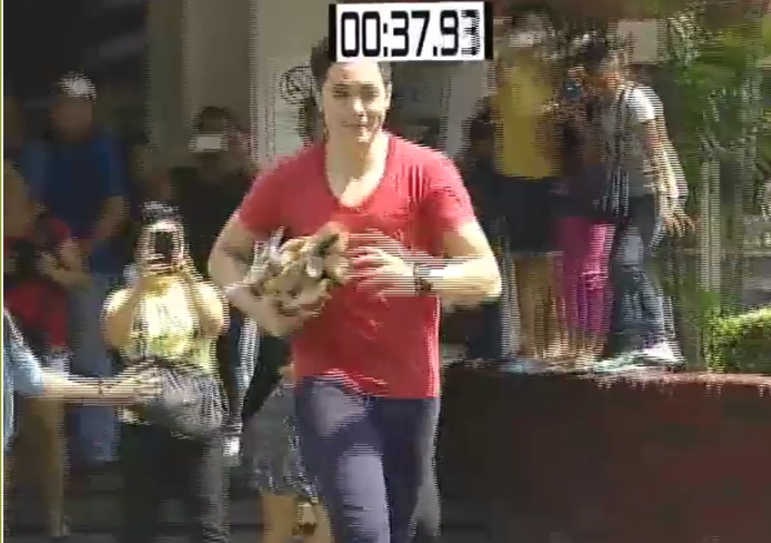 Alden then prepared and waited for Lola Nidora’s signal. The timer was set. Alden managed to warm up in the ALDUB monthsary episode. And Lola Nidora said go. As Alden ran from the studio out of the building, the timer was shown on the top middle part of the screen.