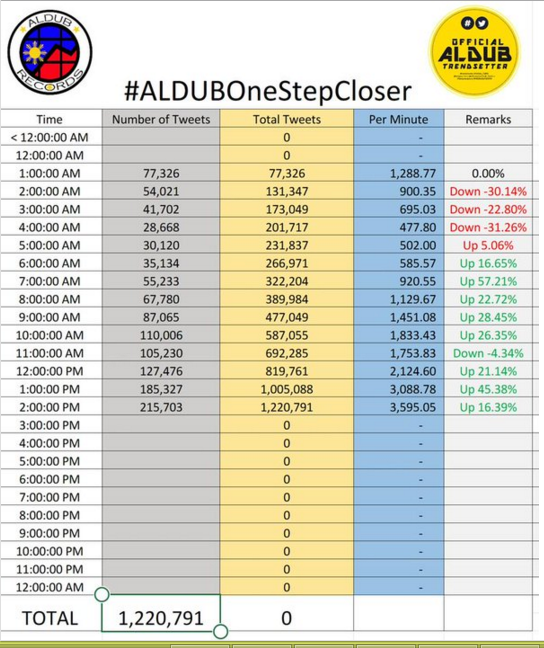 The ALDUB One Step Closer episode had an interesting opening. They had a roll call of teams and Twitter accounts that helped out in organizing the ALDUB EB Tamang Panahon special episode. It made everyone that participated in this global phenomenon special. It was the best fan service ever done by a Filipino variety show. It was apart from the updated count regarding chairs assembled from the collected plastic bottles donated.