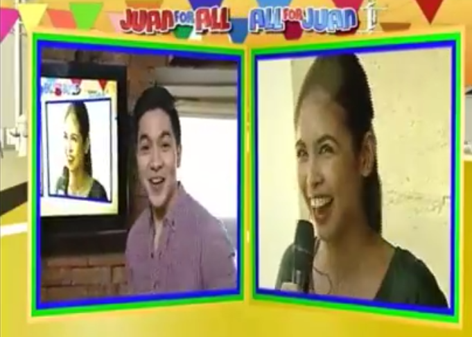 Alden then took a chance to talk again to YayaDUB. “Sana multo na lang ako para puede kitang dalawin gabi-gabi.” (I wish that I am a ghost so that I can visit you every night.) YayaDUB was so elated. It affected the way she talked at the ALDUB One Step Closer episode. [Soon, Eat Bulaga capitalized on the fact that Maine Mendoza can speak now. She is starting to match the spiel-speaking speed of Paolo Ballesteros. Her hosting skills improved. Not too jolly. Not too monotonous either. Also, her interest in the Sugod Bahay winners seemed genuine. JoWaPao has taught her well.]