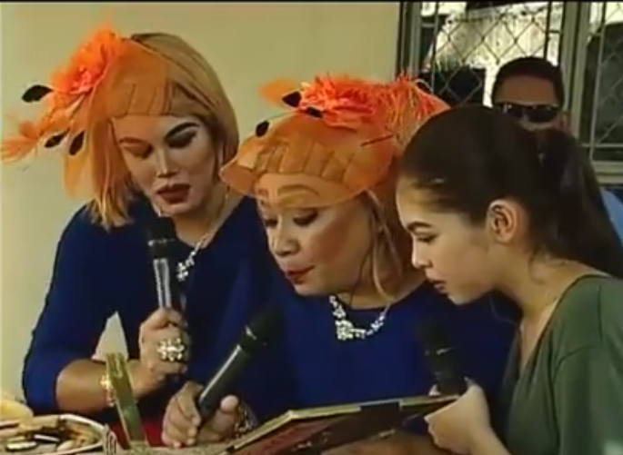 And so Lola Nidora narrated their mother’s diary entry. “Mahiwaga ang bahay ni Mama. Bata pa lang ako ramdam ko napapalibutan ito ng kababalaghan. Ito ay mga elemento na nagbabantay sa bahay.” (Mama’s house is mysterious. As a kid I could feel that it is filled with dread. These are the elements guarding the house.) This was when Lola Nidora thought of the tools to bring upon going to that house as early as in the ALDUB One Step Closer episode. “Luma na yung mga bawang-bawang. Magdala tayo ng armalite. Bazooka. Asin.” (Garlic is passe. Let’s bring armalite. Bazooka. Salt.)