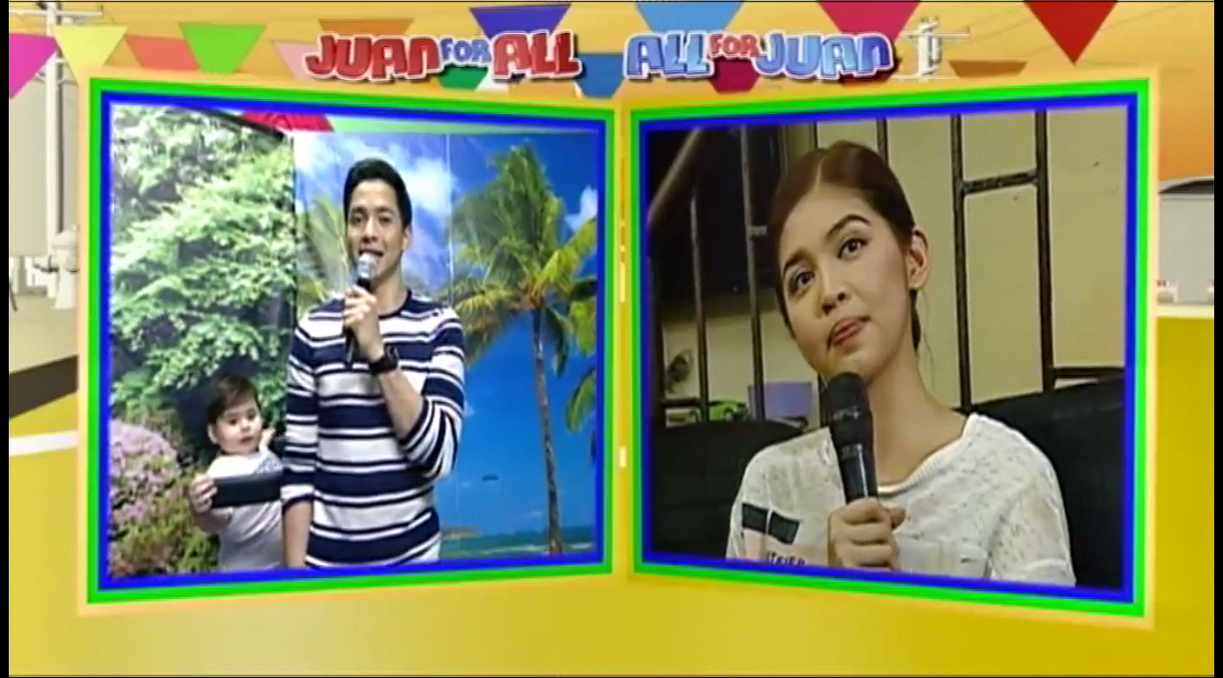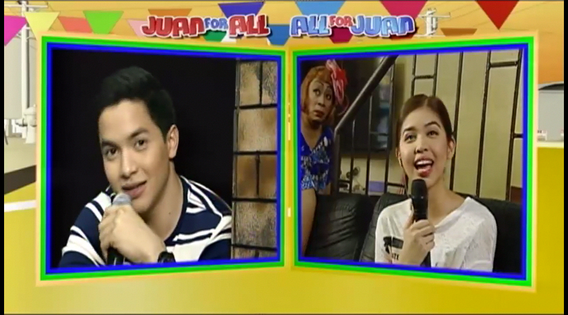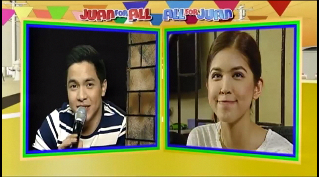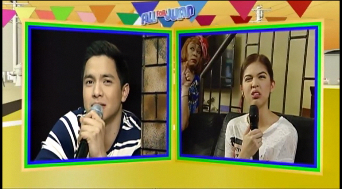 Lola Nidora then was asked again about the pet. Only she can ask both Divina a.k.a. YayaDUB and Alden about the alleged pet. Divina replied. “May pet po kasi kami kagabi. Ayun po. Inalagaan niya yung pet.” (We have a pet last night. So there. He was taking care of his pet.) Alden had to clarify what pet before the green jokes take hold into the ALDUB Serendipity dialogues. “Nagdala po kasi ako ng dog sa set.” (I brought a dog to the set.) Speaking of green jokes, Boss Joey de Leon can’t help himself again. “May balahibo ba yung pet mo? Kasi walang kwenta kung walang balahibo.” (Is your pet hairy? Because it’s useless when it’s not hairy.)