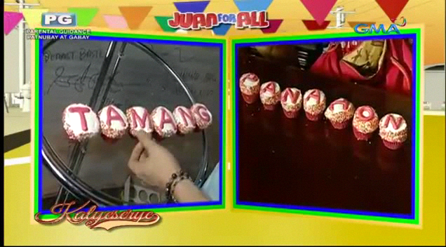 To give Alden and YayaDUB an idea of the blue folder’s contents. Lola Nidora sent Alden a box of cupcakes with letters on them. YayaDUB has a box of cupcakes with letters to arrange too. Once Alden and YayaDUB arranged the letters, it formed 2 separate words. Alden formed the word “tamang”. YayaDUB formed the word “panahon”. This gave them a clue to what ALDUB The Big Surprise is.