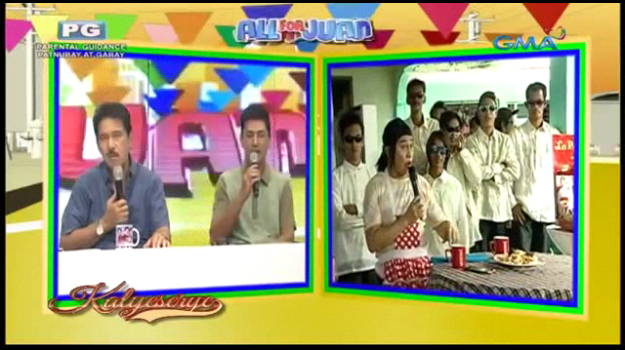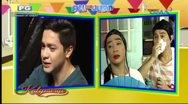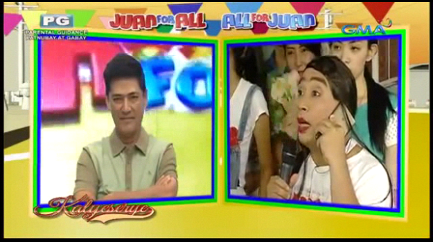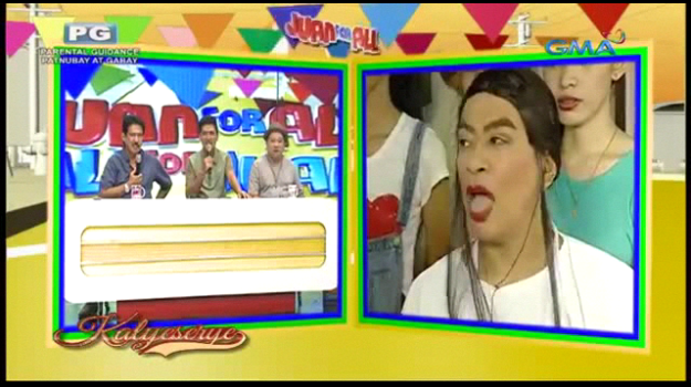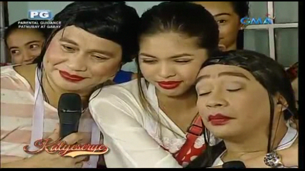 Donya Tidora still has not returned ever since celebrating YayaDUB’s performance at the EB Dabarkads Pa More Grand Finals. Donya Tinidora is keeping the post for the meantime. Lola Nidora has yet to return. The KalyeSerye commentators were again entertained at the sight of Donya Tinidora cosplaying YayaDUB. Yes, cosplay is the safe term to use here. (Anyone from the KalyeSerye would rather use the term “disguise” than cosplay though. Just like here in the ALDUB Way Back Home episode.)