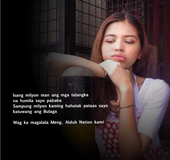 Alden suggested that he come over to help. “Hindi ko kayang nakikita kayong ganyan.” (I can’t bear seeing you like that.) Donya Tinidora is visibly upset. “Alam mo ba kung saan kami naron? Punta ka ng punta.” (Do you even know where are we? You keep saying you’d come over.) Donya Tinidora had been cranky for weeks now. It worsened at the ALDUB Where To Go episode. Worsening Alden’s guilty feelings.