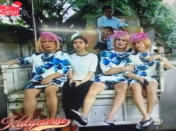 The truck stopped close to their next Sugod Bahay errand. Donya Tidora is not used to the poor life. She started channeling her inner actress. “Ayoko ng walang tubig. Ayoko ng mabaho. Ayoko ng putik.” (I don’t want [a place] without water. I don’t want foul smell. I don’t want mud.) Donya Tinidora immediately got the pop culture reference. She used a pop culture reference of her own in the ALDUB Where To Go episode. “Tumigil ka nga diyan, Maricel. Pasan ko ang daigdig.” (Shut up, Maricel [Soriano]. I have the world on my shoulders. [From “Pasan Ko Ang Daigdig” starring Sharon Cuneta.])